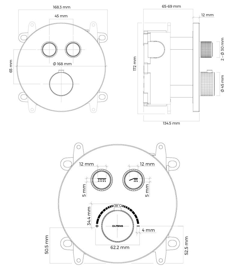 Ukryta technologia instalacji podtynkowej zachowuje czysty i minimalistyczny, skandynawski design. Baterie dostępne są w dwóch wariantach okrągłym i kwadratowym, by najlepiej komponować się z Twoim otoczeniem.