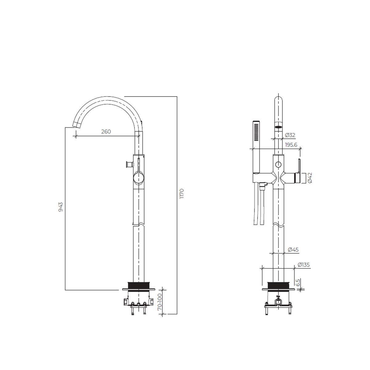 Bateria wannowo-prysznicowa wolnostojąca czarny mat 34304300 Oltens Rann