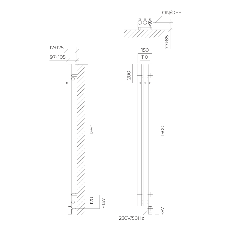 Grzejnik elektryczny 150x15 cm 55119610 Oltens Stang